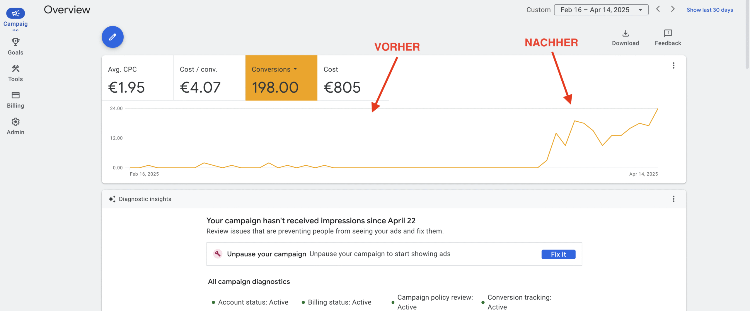Dein Budget wird überwacht und eingesetzt, wo es den höchsten ROI liefert